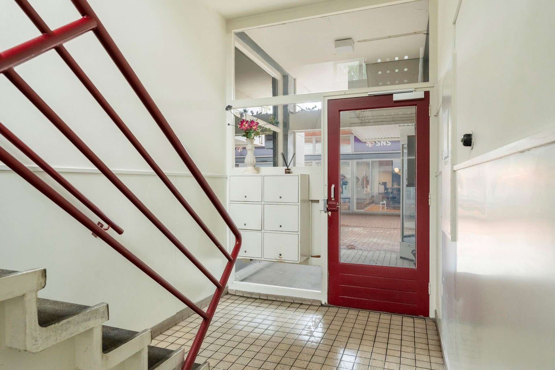 Gemeenschappelijk afgesloten entree met eigen berging en een achteringang