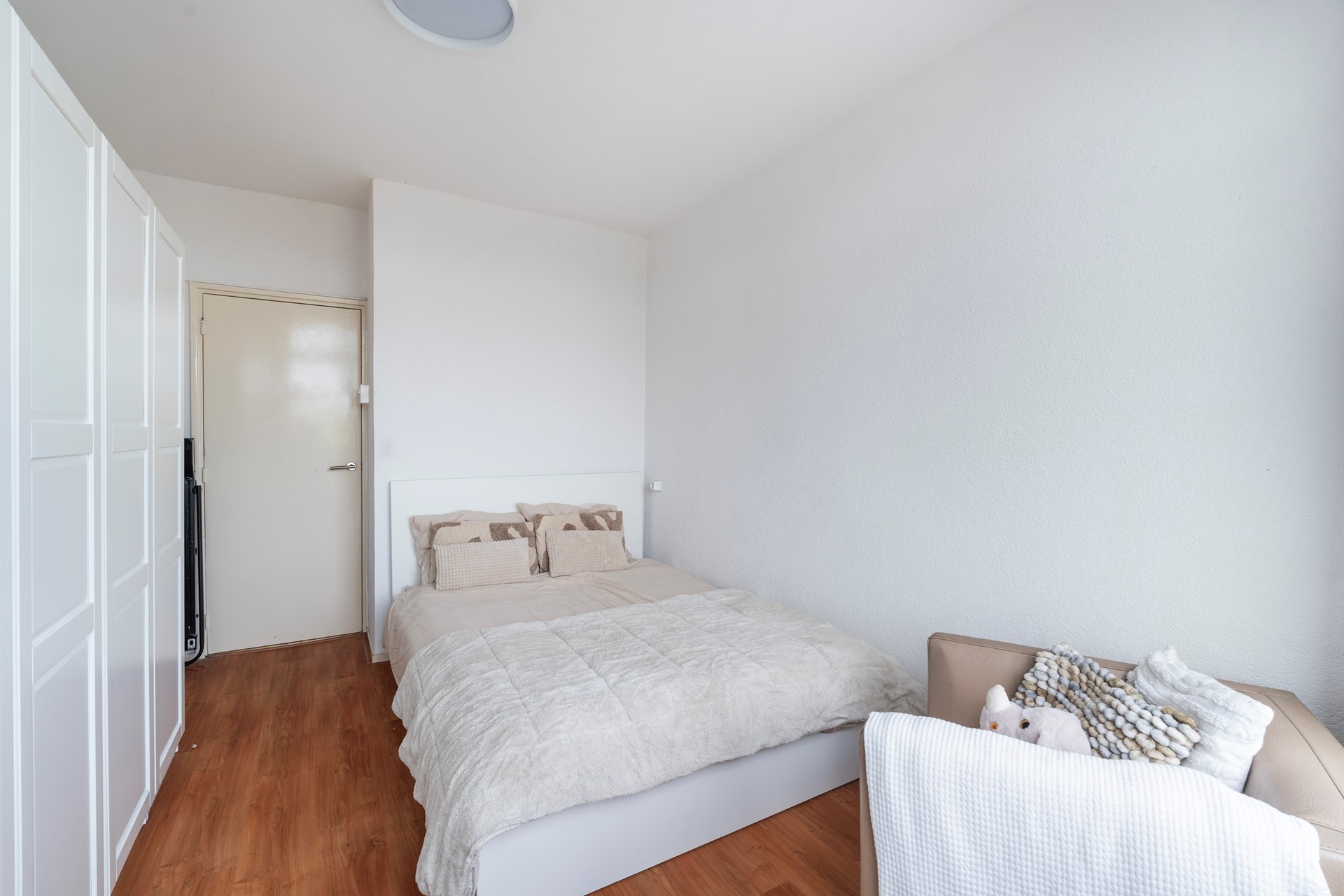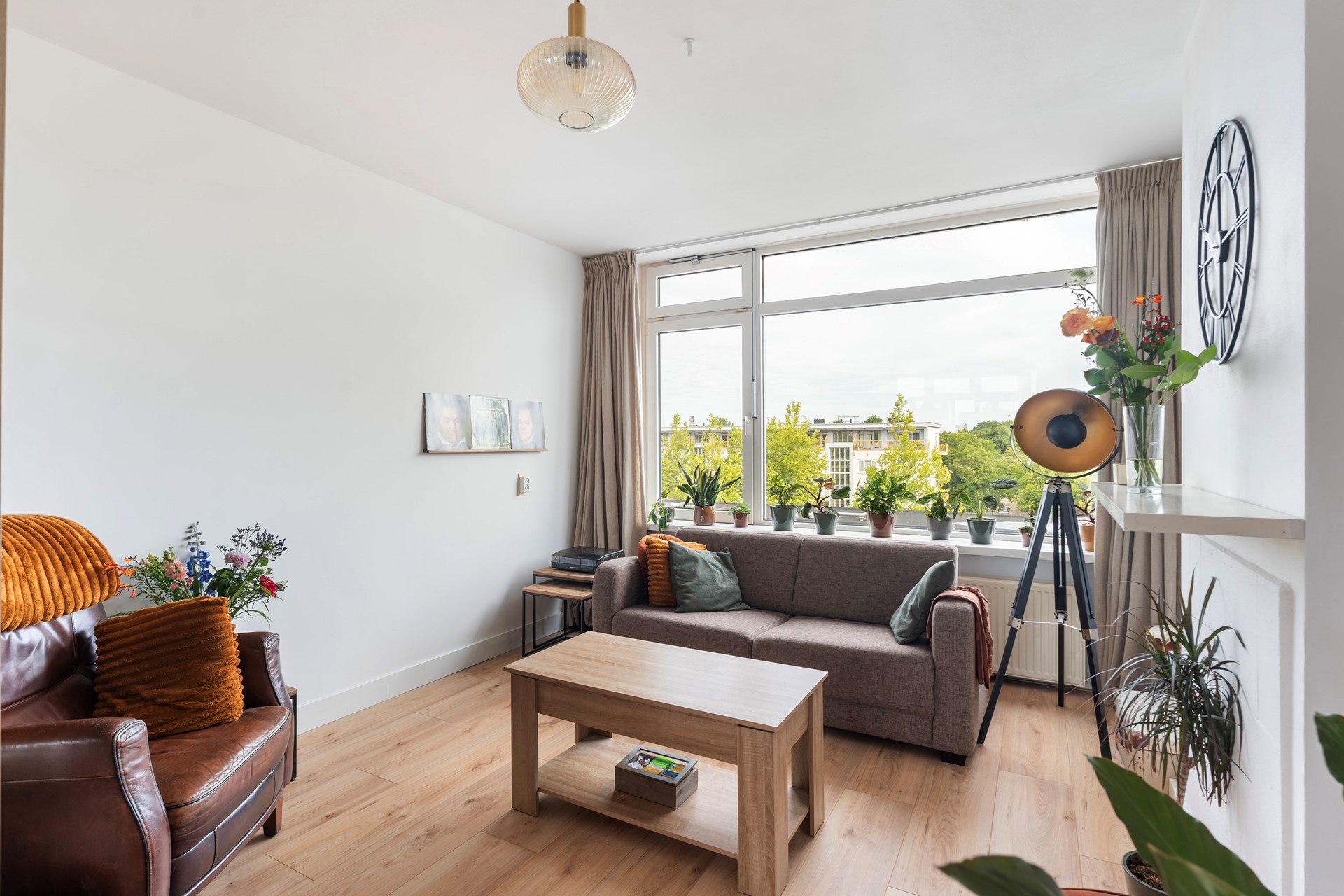 Through the central entrance, you can take the stairs to the third floor where you enter the apartment. Upon entering, you will immediately notice that the hall and living room have neat and tasteful laminate flooring. All walls are also well finished and the large windows on both sides of the apartment make the living room very light!