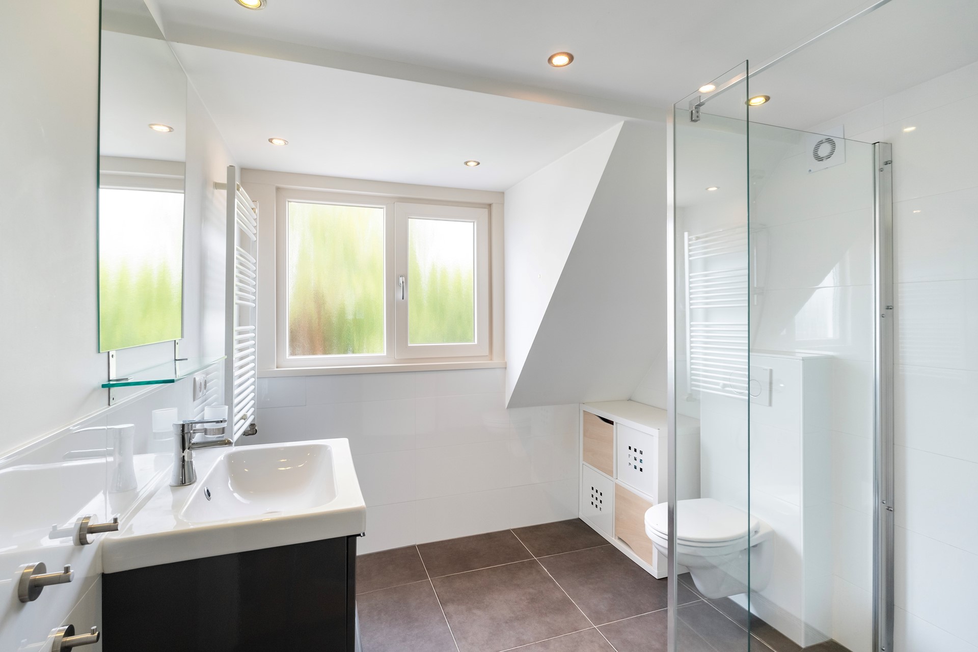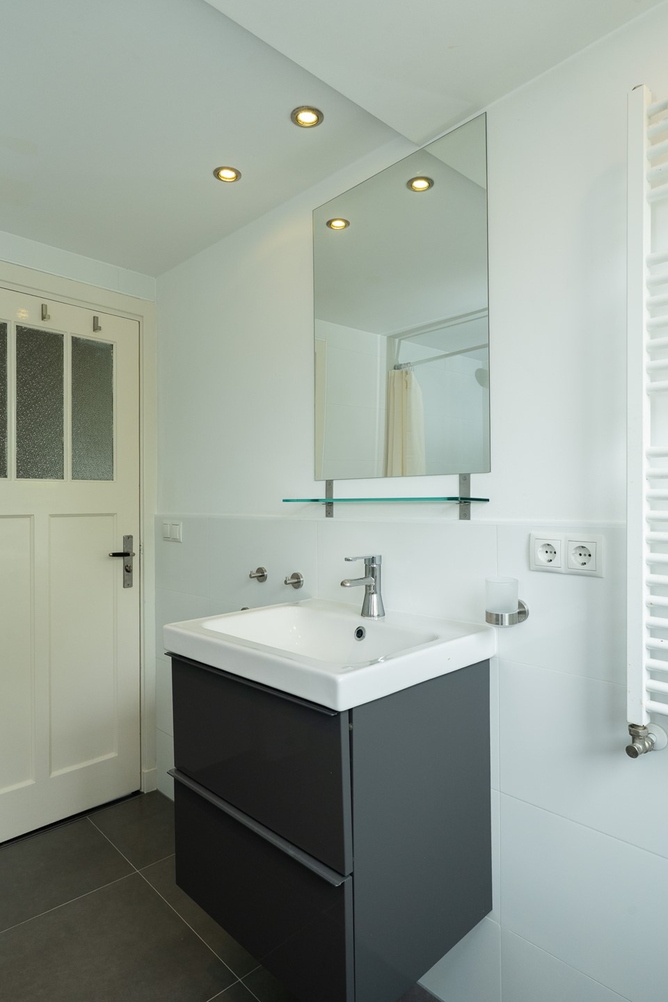 Op de eerste verdieping bevinden zich twee ruime slaapkamers en een moderne badkamer met inloopdouche, wastafelmeubel en tweede toilet. Aan de voorzijde is bovendien een aparte wasruimte aanwezig.